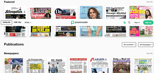 Tjenesten gir tilgang til en rekke nasjonale og internasjonale aviser og tidsskrifter, som for eksempel Aftenposten, Fedrelandsvennen, The Guardian, El País, Forbes og klassikeren Bamse (dog bare på svensk).