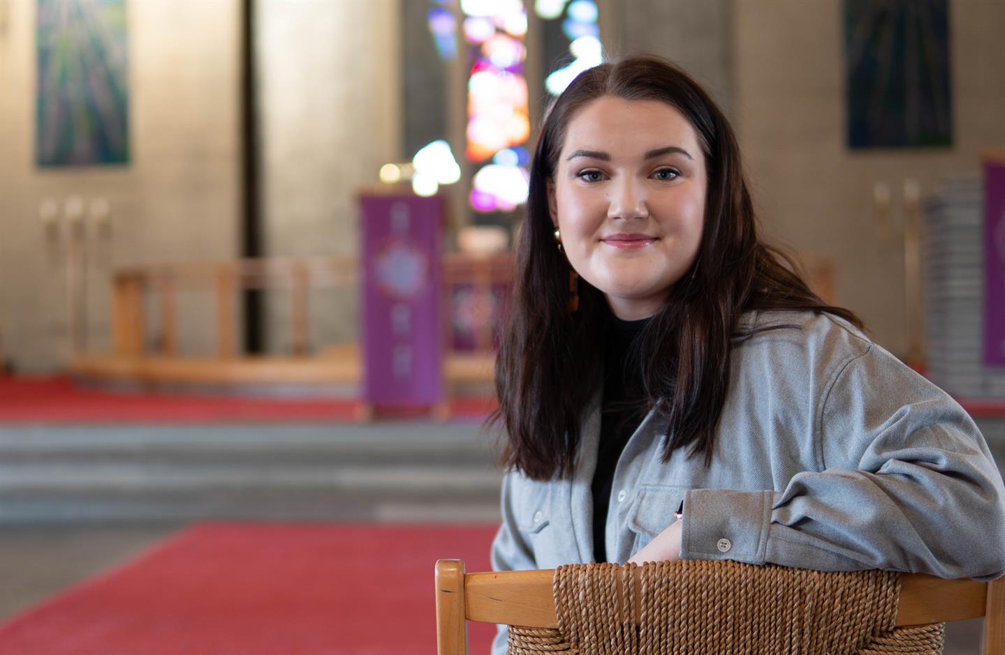 Ingrid Fantoft har jobbet i Manglerud kirke ved siden av studiene i ett år og har bare fått mer lyst til en lignende stilling etter studiene.