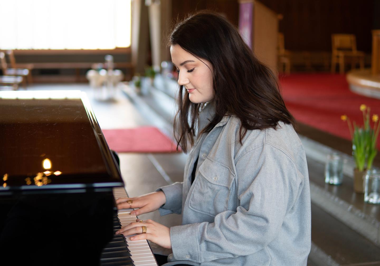 - Jeg har tenkt siden videregående at jeg ville jobbe i en menighet. Jeg vurderte å ta praktisk teologi eller Ungdom, kultur og trosopplæring, men musikkinteressen min er så pass stor at det var rart å ikke skulle ha musikk i skolehverdagen. Dessuten er musikk en stor del av mange oppgaver til en menighetspedagog. Jeg lærer mye i denne jobben som er relevant for studiet og omvendt, sier Fantoft.