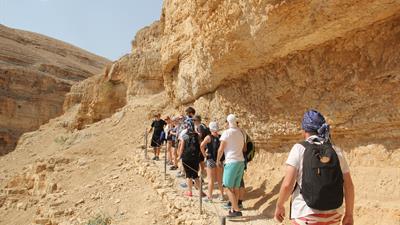 Det avholdes eksamen (fem timers skriftlig skoleeksamen) i emnet Jesus og Galilea mot slutten av utenlandsoppholdet. I månedsskiftet juli-august er det en fire dagers hjemmeeksamen i enten emnet jødedom eller emnet religion og politikk med fokus på Midtøsten-konflikten, med påfølgende muntlig eksamen i det emnet det ikke blir gitt hjemmeeksamen i.